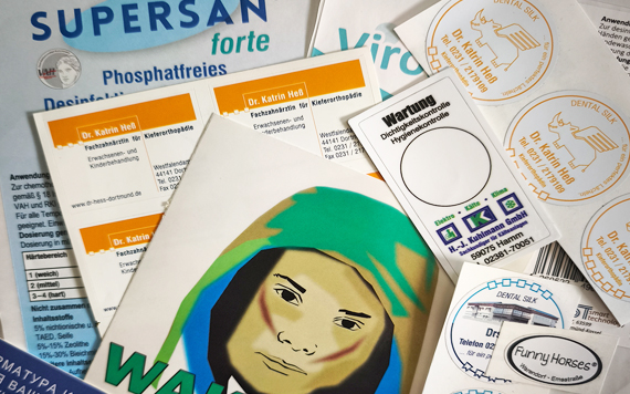 Wir produzieren ebenfalls Aufkleber und Etiketten aus PVC-, PE- oder PP-Folie sowie wasserfeste Aufkleber aus wasserbeständiger Folie. Ob glänzend oder matt laminiert – Aufkleber gehören zweifellos zu den beliebtesten Werbeträgern. Dazu zählen Autoaufkleber genauso wie Hinterglasaufkleber oder Aufkleber für Button oder Orden.
